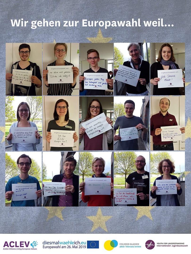 Im Rahmen unserer Förderung durch die EU in dem diesjährigen Projekt Active Citizens Living European Values (ACLEV) haben auch wir uns näher mit unserem Leben in Europa auseinandergesetzt und haben in unserem Netzwerk mal nachgefragt warum unsere Mitglieder es wichtig finden zur kommenden Europawahl am 26.Mai zu gehen.